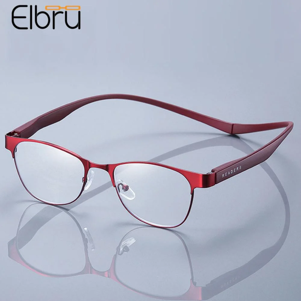 Elbru Magnetic Hanging Metal Neck Reading Glasses Women Men Anti-blue Light Magnet Reading Presbyopia Eyeglasses +1+1.5+2...+4