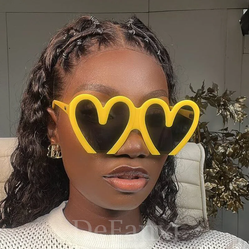 Women Heart Shaped Glasses Luxury Designer One-Piece Yellow Pink White Cat Eye Female Sun Glasses UV400 Funny Eyewear